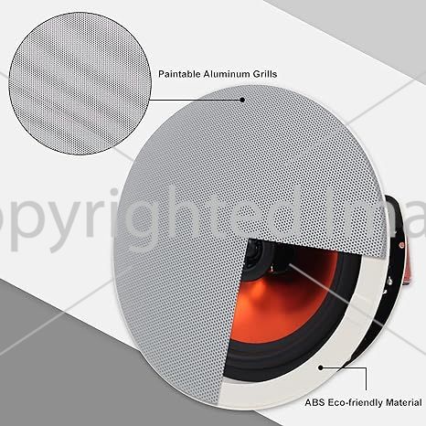 - Speakers Mounts on Ceilings:Total Speakers Diameter:6.4 Inches (16.2 CM), Cut Out Diameter 5.7 Inches(14.5 CM), Speakers Depth: 2.6 Inches (6.5 CM), Mounting Depth:2.6 inches(6.5 CM)